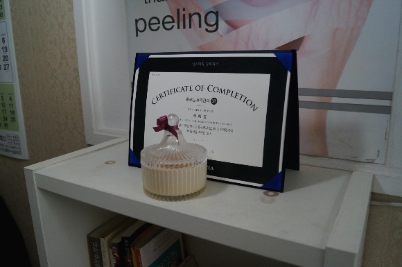 샵에서 사용하는 제품들과 원장님께서 직접 수여하신 춤추는 윤곽 관리 자격증도 있답니다!!!