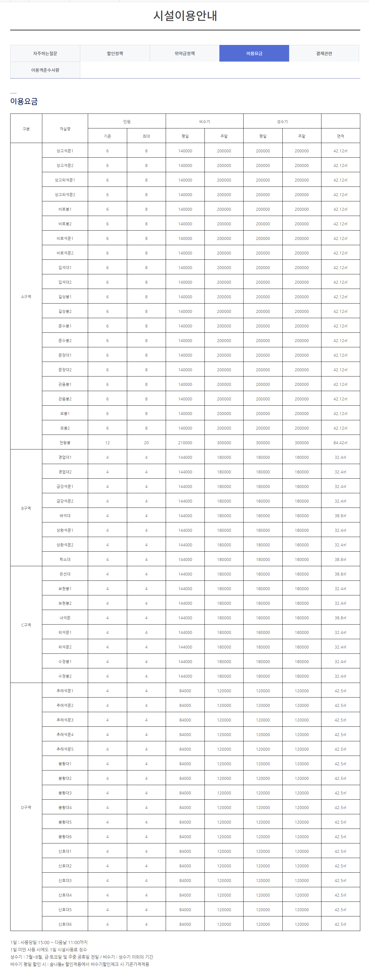 ※정비 및 소독시간 이용불가(오전11시~오후1시)