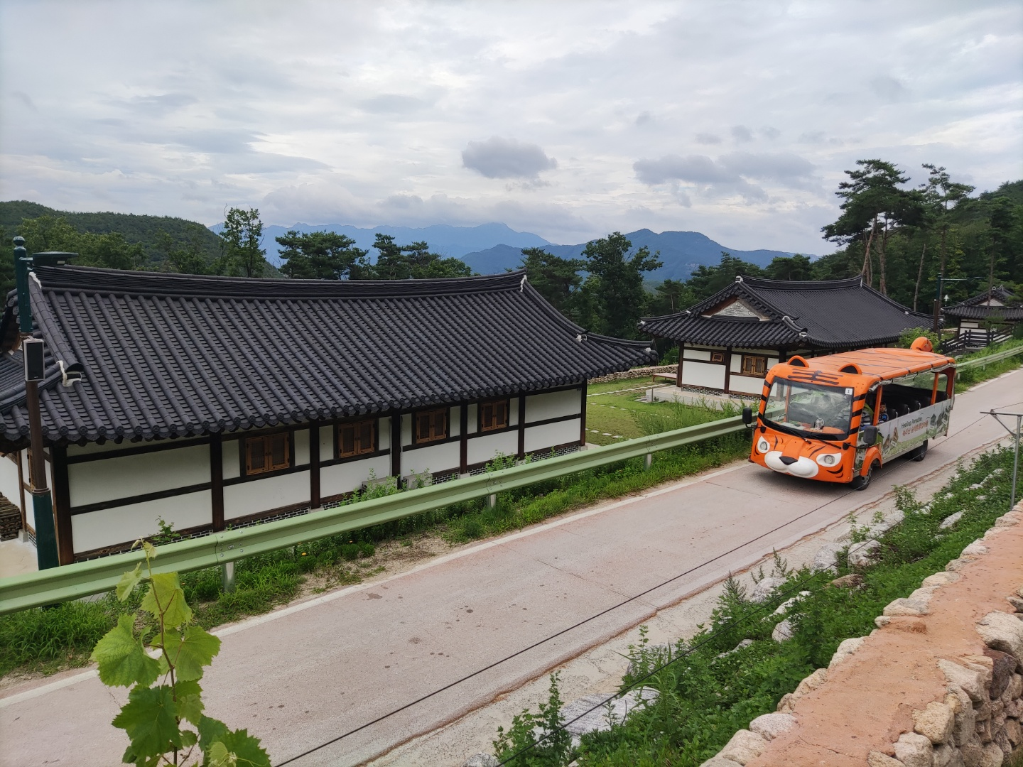 숙소 내 규모가 크고, 주차공간이 부족하여, 호랑이버스 2대가 운영되고 있어요호랑이버스가 식당, 수영장, 각 숙소에 15~20분간격으로 순회하면서 셔틀을 해주고 있습니다.아침 10시에는 해설투어버스도 운영하니 이용해보시는거 추천드려요