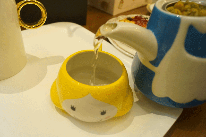 처음에 뭐지 해서 봤는데 머리를 들면 잔이 되고 몸통은 캐모마일이 담겨있어요 ㅋㅋ