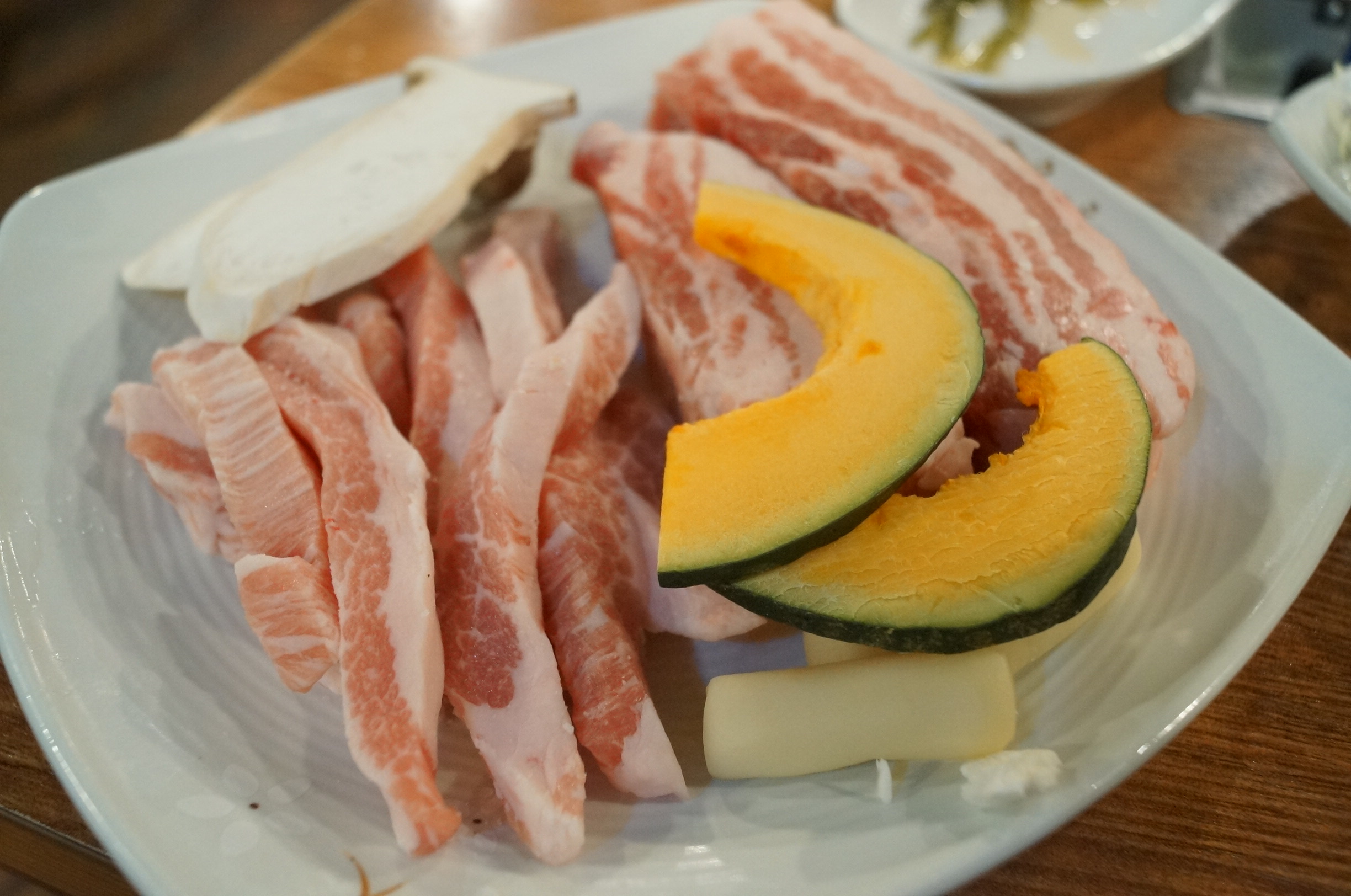 고기만 나오는 것이 아니라 버섯이랑 단호박, 떡까지 같이 나오더라고요