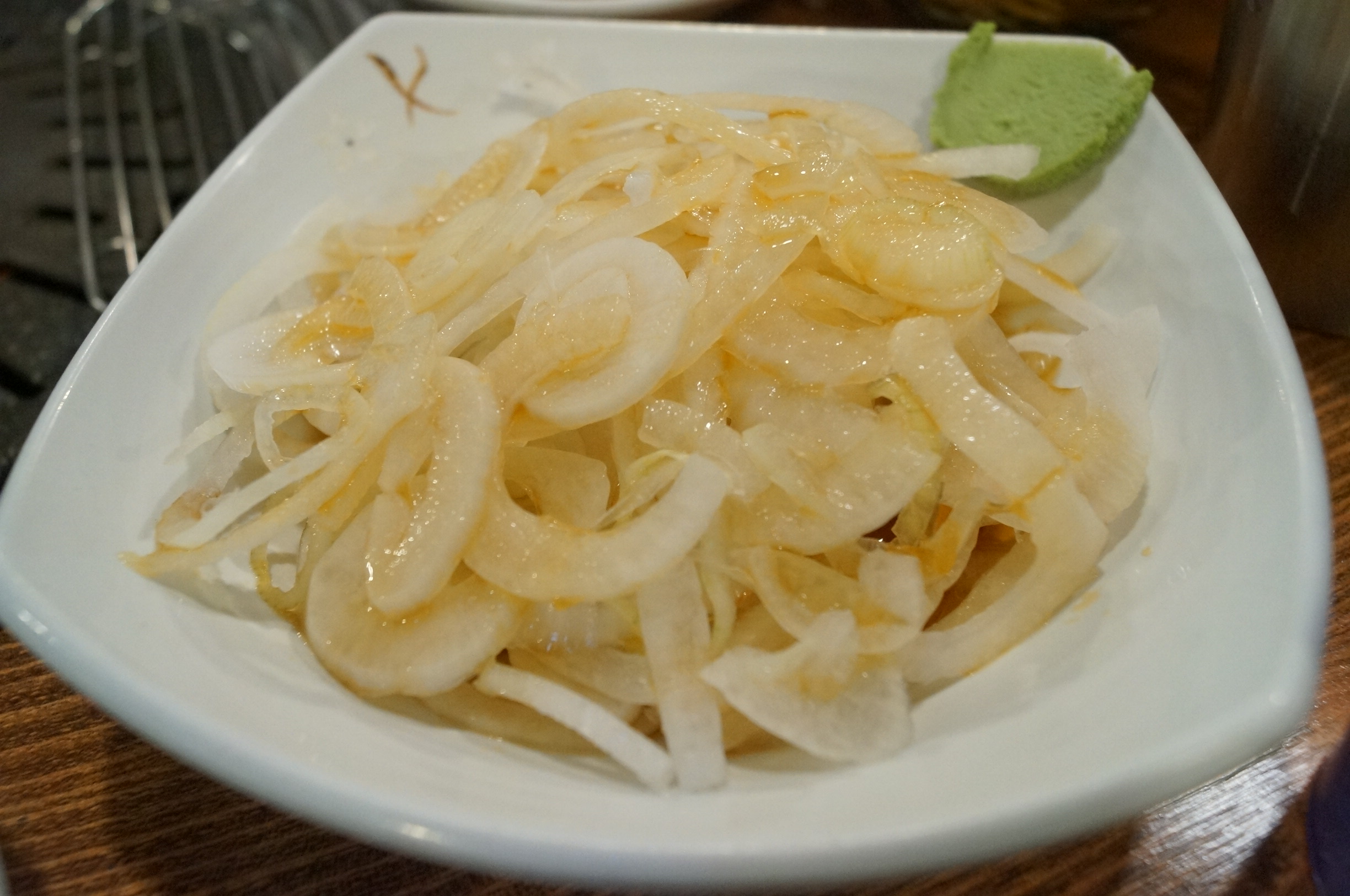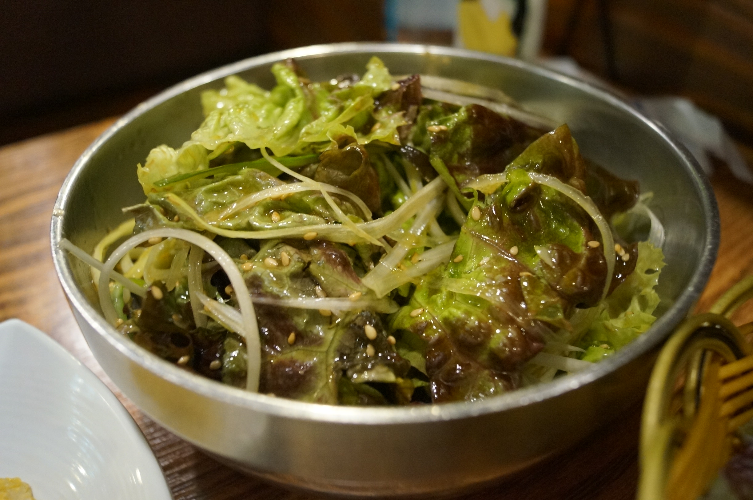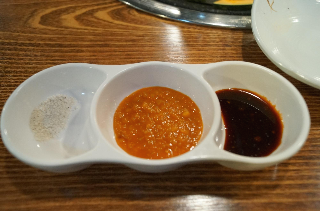 소스는 소금, 쌈장, 바베큐소스 3가지가 나오고, 상추겉절이가 아주 새콤달콤하니 맛있더라고요 ㅋㅋ 그리고 매운 고추를 저렇게 잘게 다져서 쌈장에 올려놓고 나중에 고기 먹을 때 같이 먹으면 맛있죠ㅎㅎㅎ
