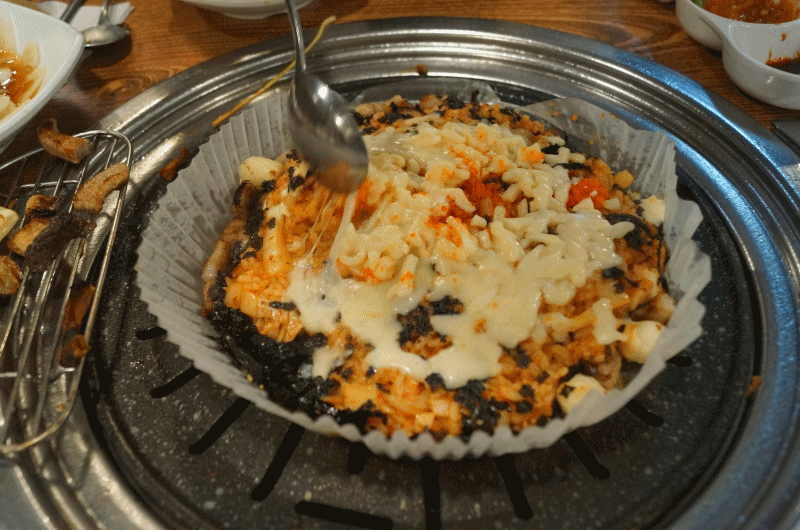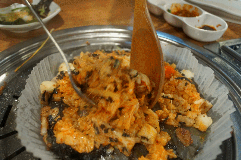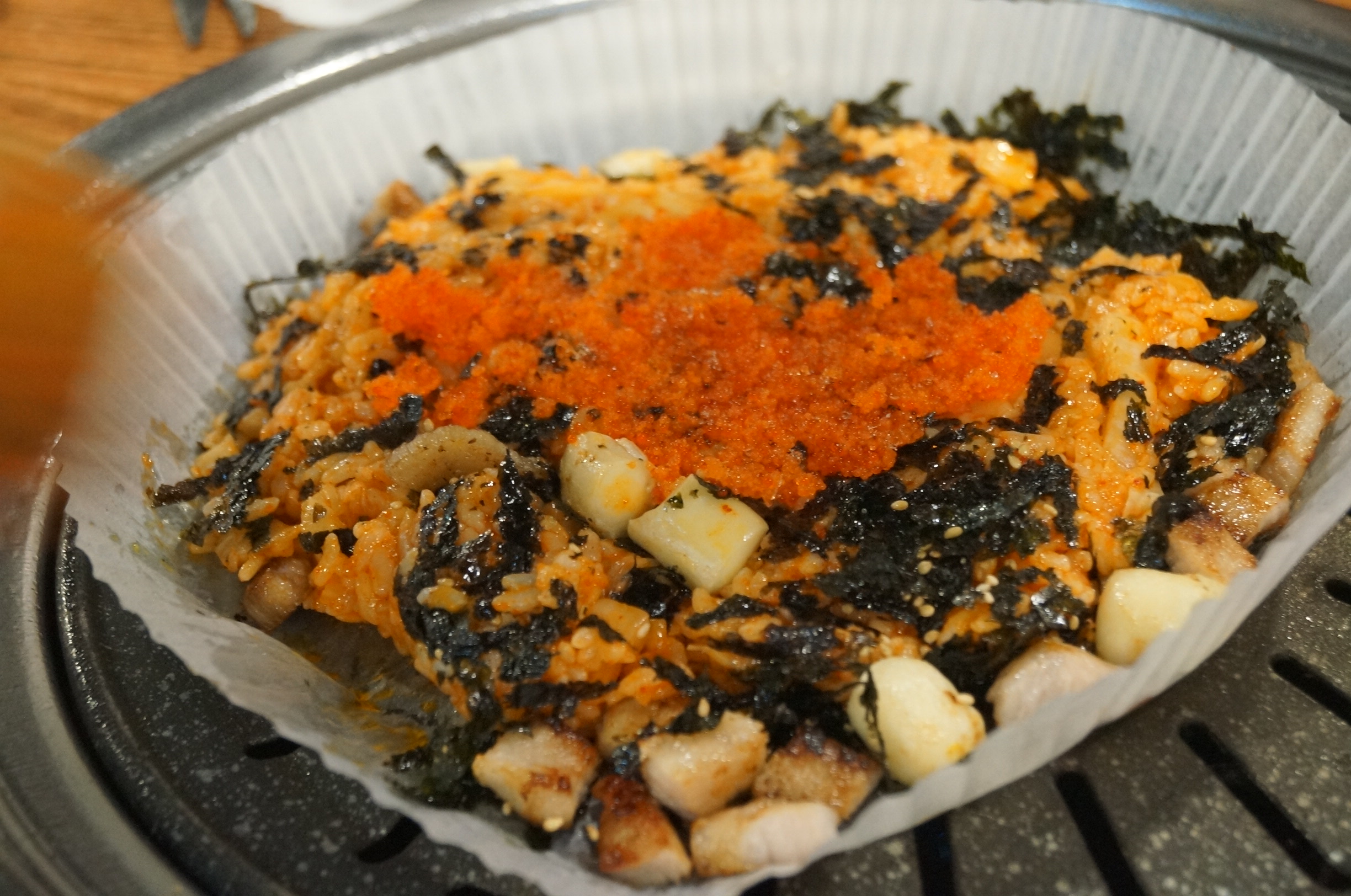 고기를 일부 먹고 남은 고기는 볶음밥에 비비기 위해 볶음밥을 주문했습니다