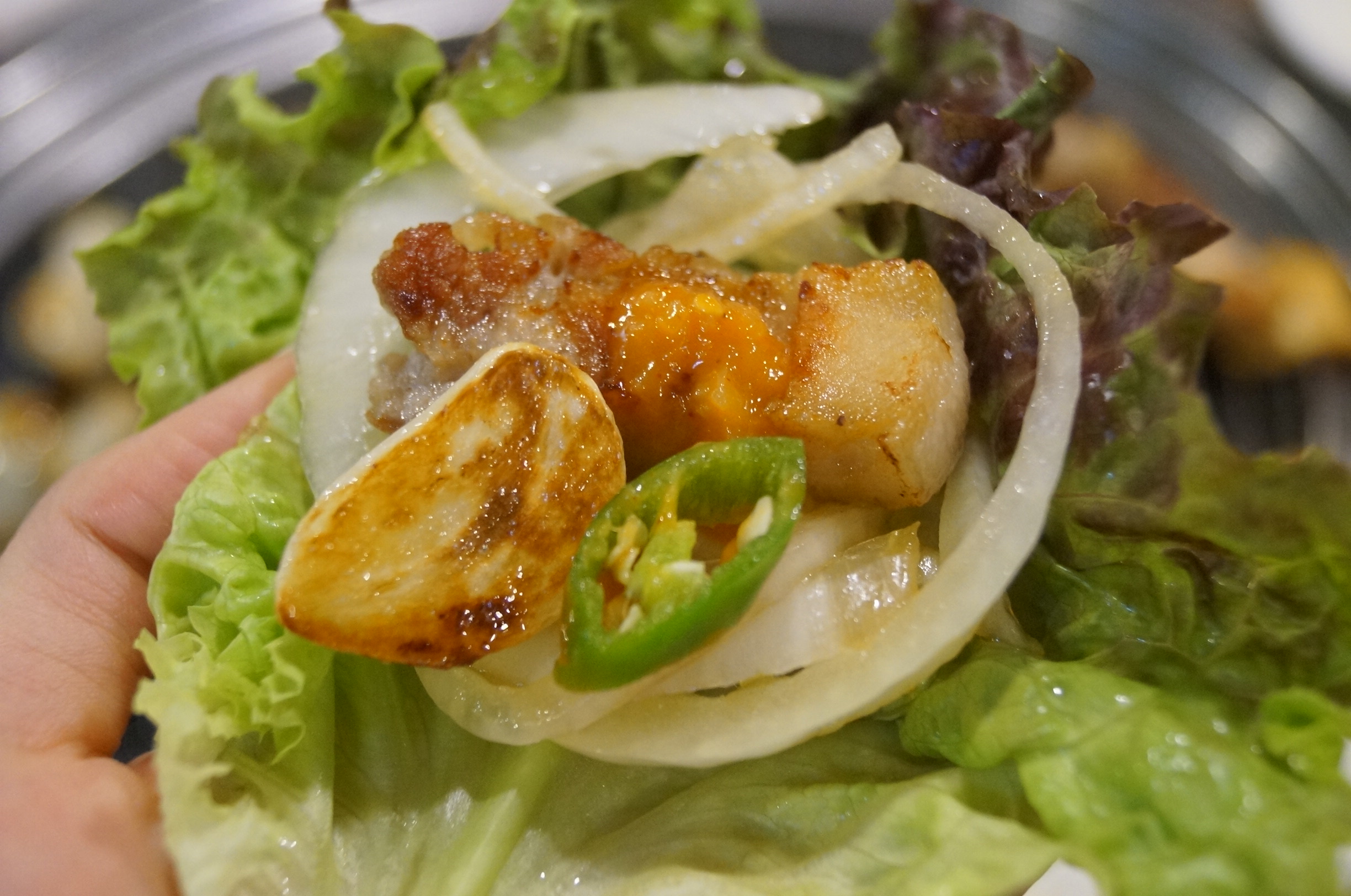 아까 잘라둔 고추랑 마늘도 맛있게 구워서 한쌈 해서 또 먹었어요 ㅋㅋ
