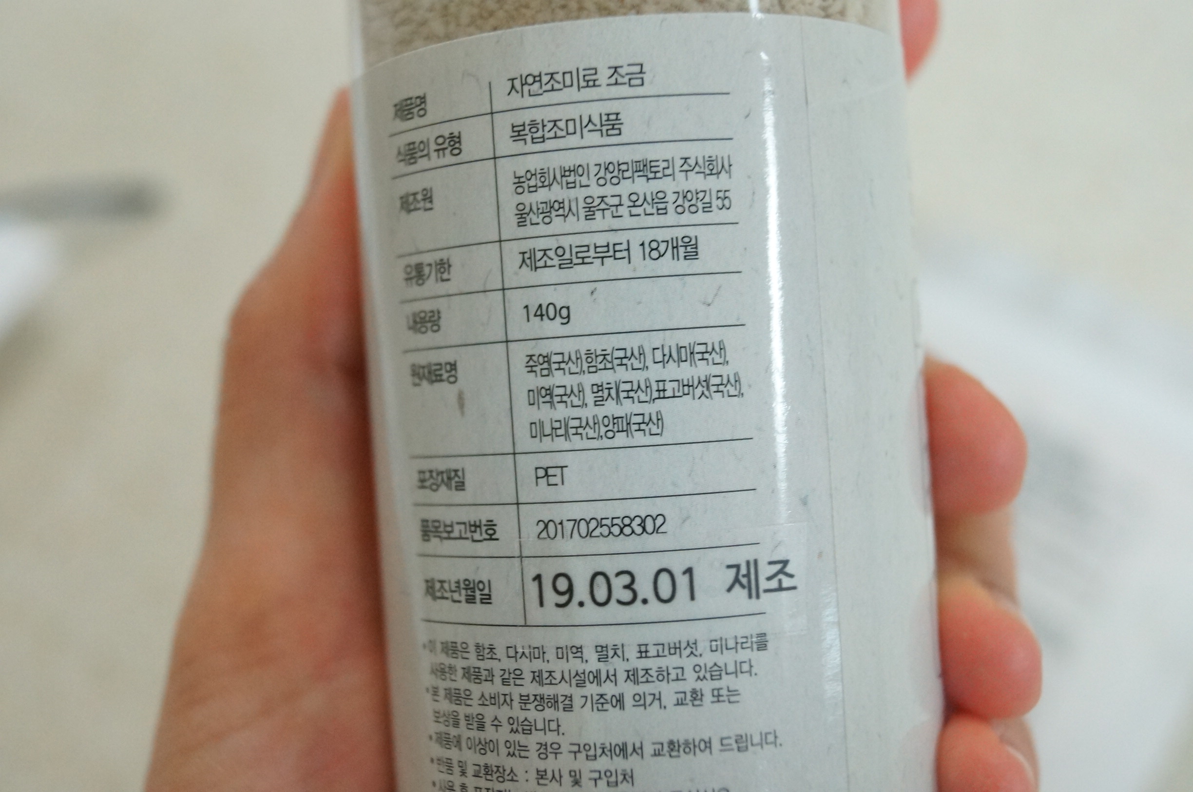 농업농업회사법인 강양리팩토리가 자연조미료 ‘조금’을 제조하였네요