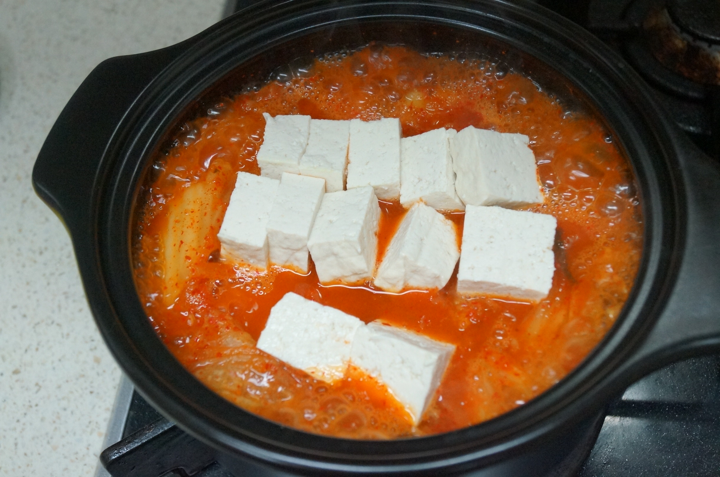 6. 그리고 어느정도 보글보글 끓으면 두부를 넣기
