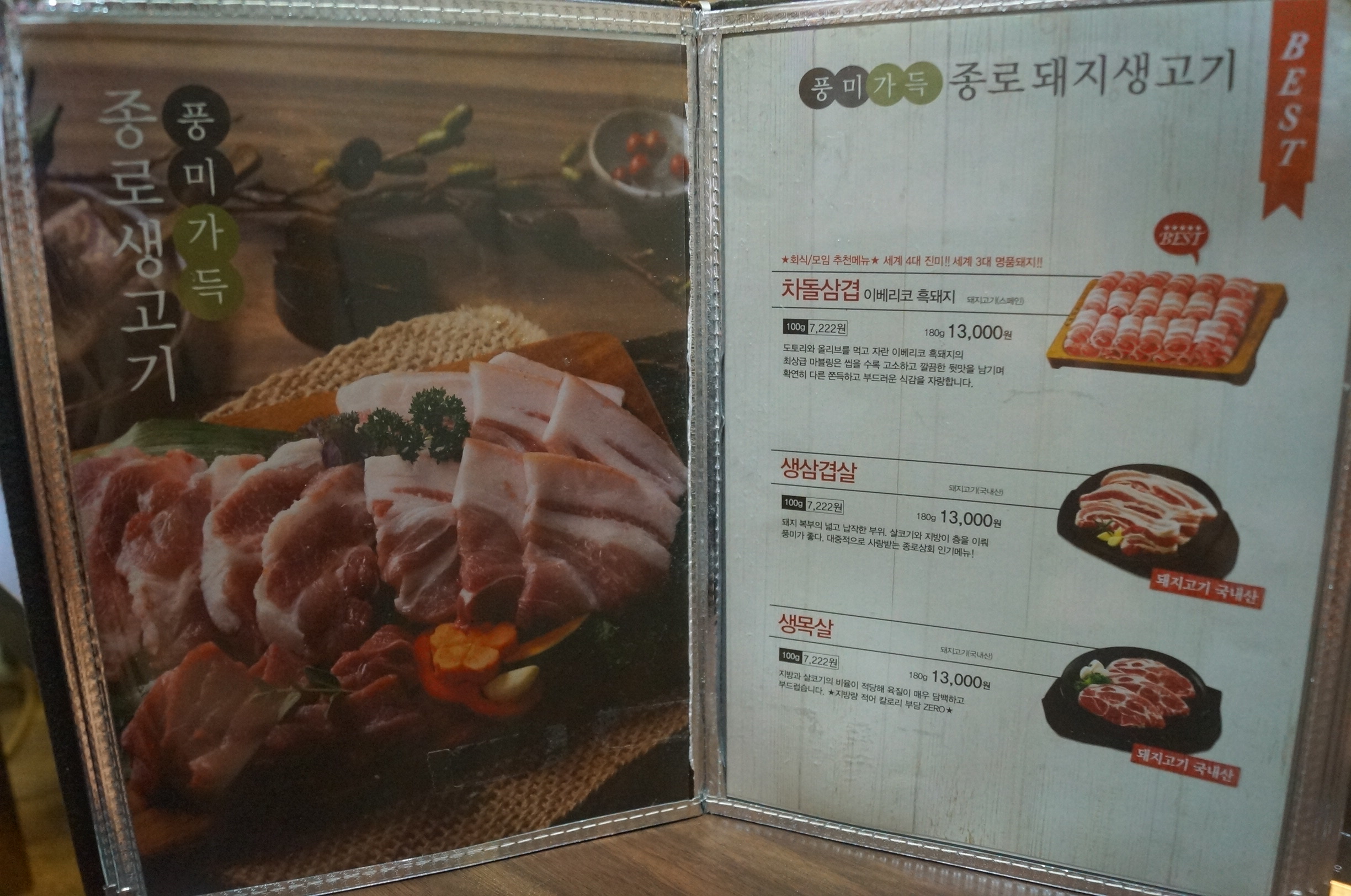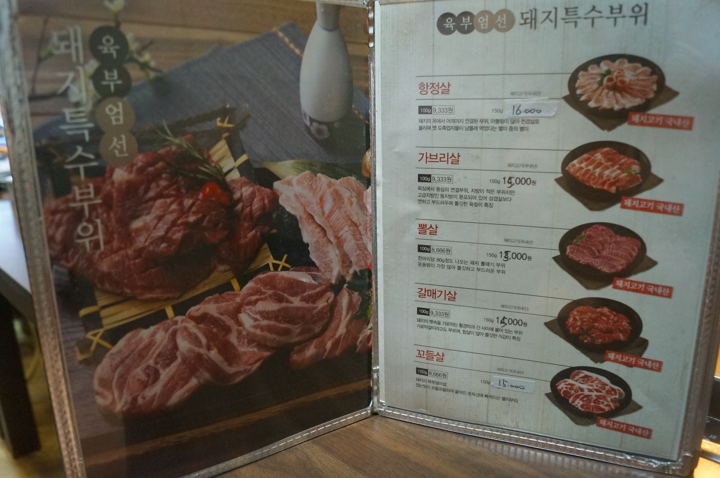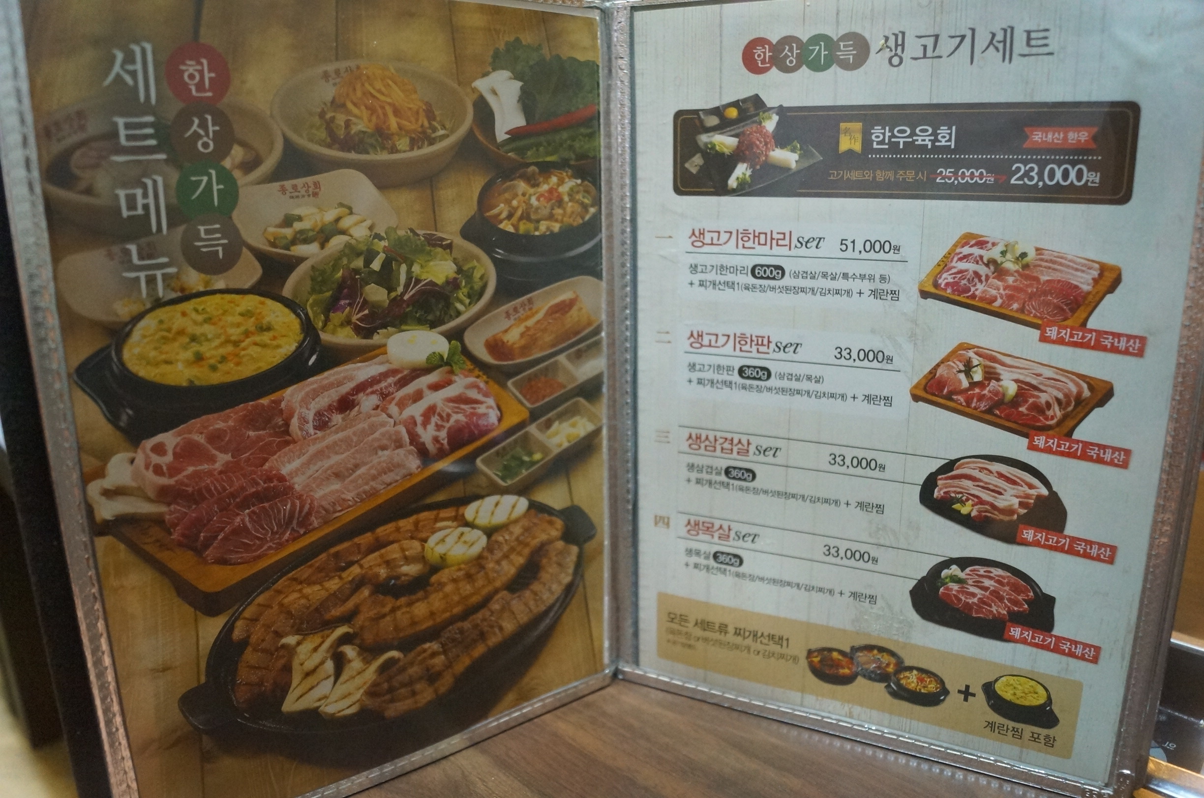 메뉴판에는 세트메뉴부터 생돼지고기, 특수부위, 점심메뉴, 후식 메뉴 다양하게 구성되어있네요